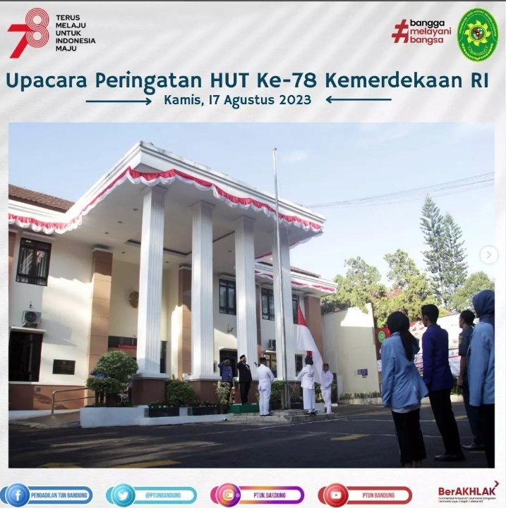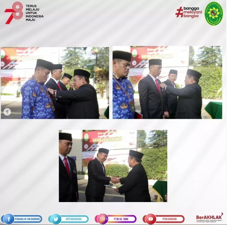 Dilaksanakan Upacara Peringatan Hari Ulang Tahun Ke-78 Kemerdekaan Republik Indonesia pada Pengadilan Tata Usaha Negara Bandung, sekaligus Penyematan Tanda Kehormatan dan Piagam: