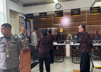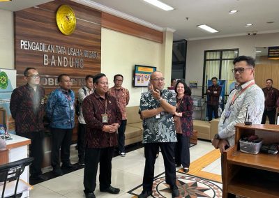Kementerian Pendayagunaan Aparatur Negara dan Reformasi Birokrasi (Menpan RB) bersama dengan Badan Pengawas Mahkamah Agung Republik Indonesia melakukan verifikasi lapangan terkait dengan Zona Integritas menuju Wilayah Bebas Korupsi di Pengadilan Tata Usaha Negara Bandung. Kegiatan verifikasi ini bertujuan untuk memastikan bahwa PTUN Bandung telah menjalankan prinsip-prinsip integritas, transparansi, akuntabilitas, dan pencegahan korupsi secara efektif dalam operasionalnya.