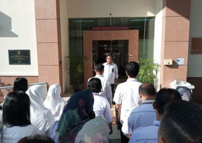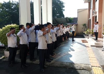 Kegiatan Apel Pagi di PTUN Bandung juga diisi dengan pembacaan doa yang dipimpin oleh Muldan Halim Pratama, S.H. (Calon Hakim), sebagai ungkapan rasa syukur dan doa bersama untuk keselamatan dan kesuksesan seluruh jajaran pengadilan.