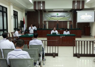 Adapun rapat Bulanan bulan Juni ini membahas mengenai Laporan Ekseskusi yang sudah dilaksanakan, Laporan keadaaan perkara dan Laporan Kepaniteraan, Laporan realisasi Penyerapan Anggaran, Laporan Kinerja kesekretariatan, serta laporan tindak lanjut atas laporan Hakim Pengawas Bidang Periode Bulai Mei 2024. Dalam rapat bulanan ini juga dilaksanakan Monitoring dan Evaluasi pembangunan Zona Integritas, dan pengawasan tentang kedisipilinan seluruh Aparatur Sipil Negara di Lingkungan Pengadilan Tata Usaha Negara Bandung.