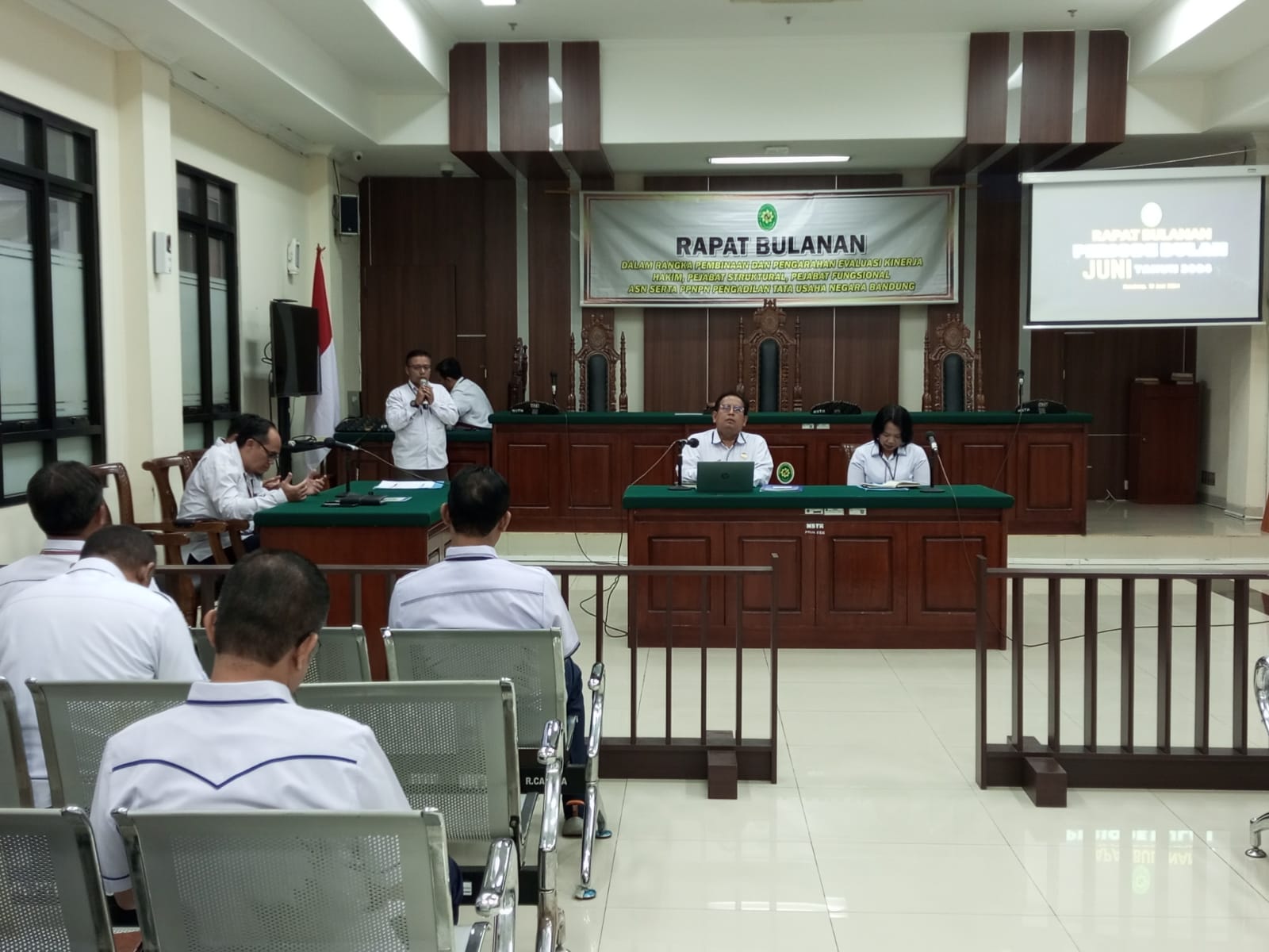 PTUN Bandung menggelar Rapat Bulanan Pengadilan Tata Usaha Negara Bandung Bulan Juni 2024 yang digelar Hari Senin, Tanggal 10 Juni 2024 yang dipimpin oleh Ketua dan Wakil Ketua Pengadilan Tata Usaha Negara Bandung. Rapat bulanan diadakan setiap bulan guna melaksanakan fungsi koordinasi dan komunikasi setiap unsur di satuan kerja dengan pimpinan PTUN Bandung.