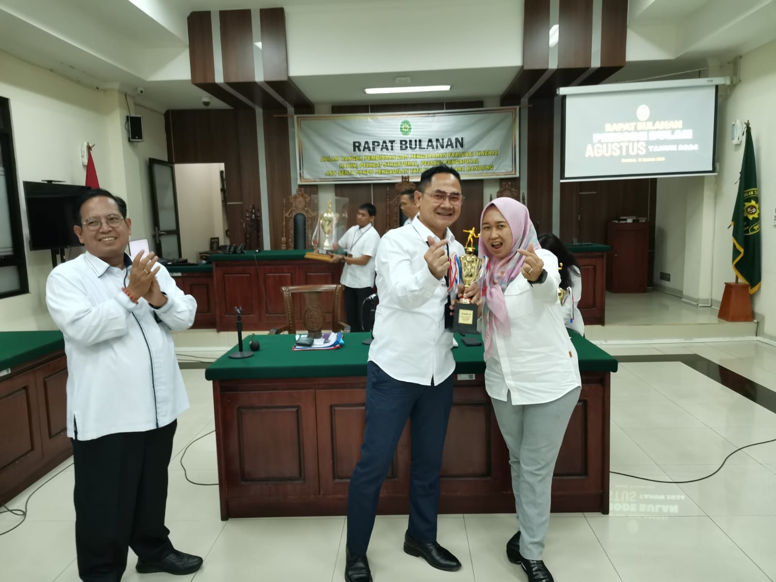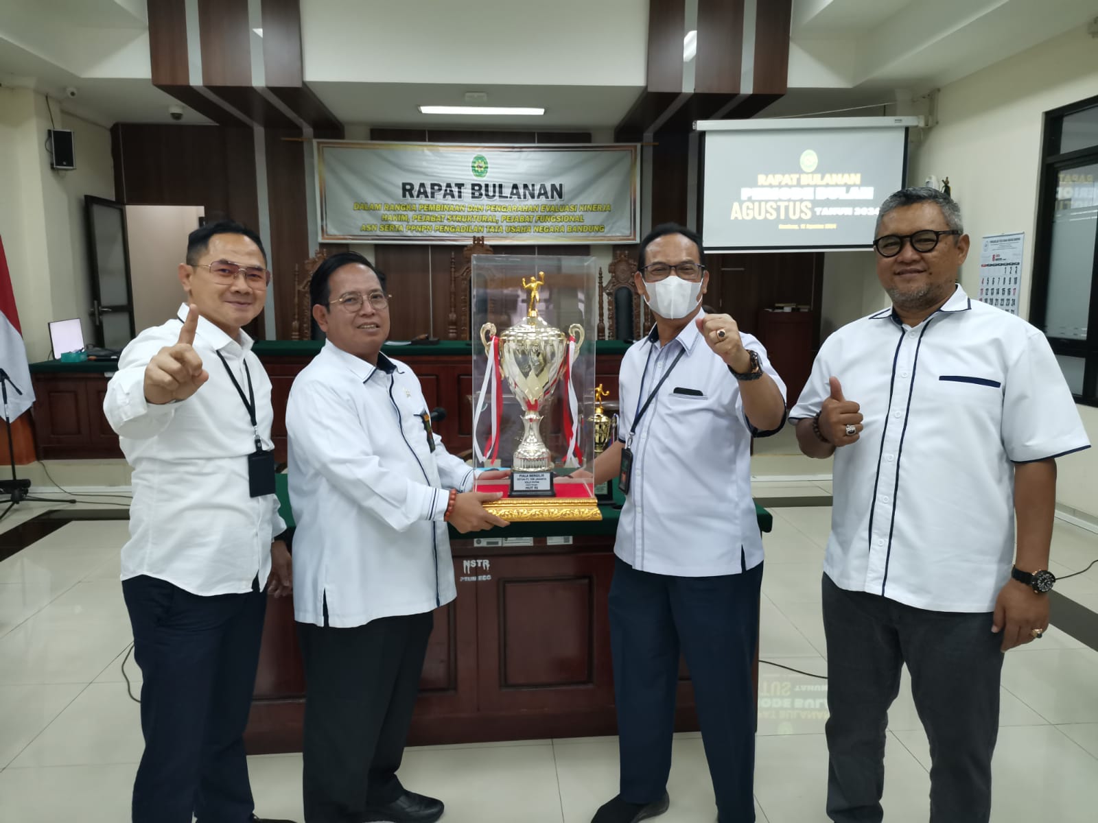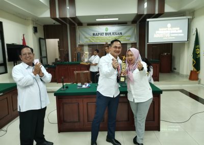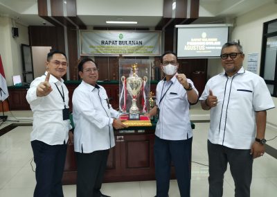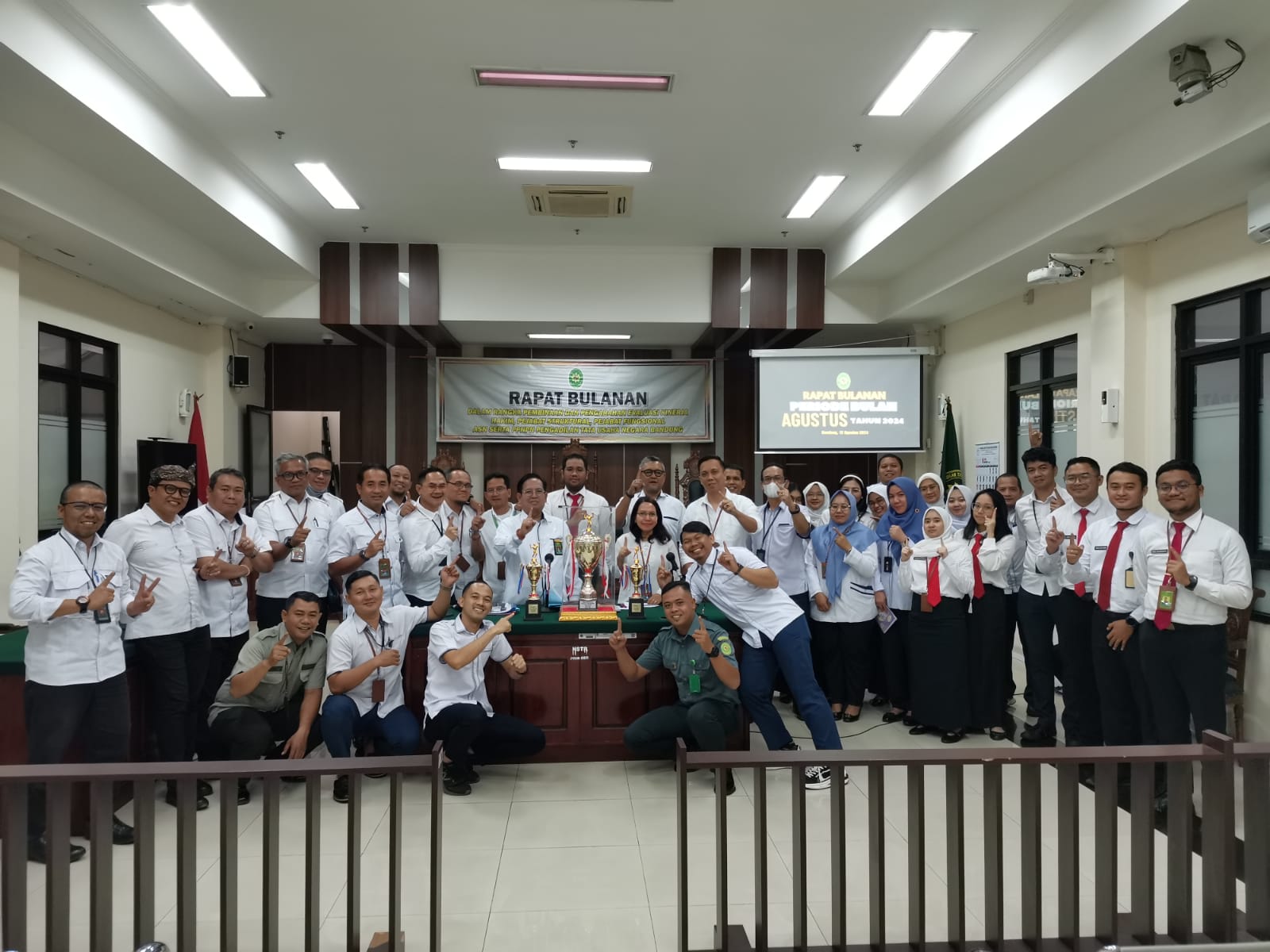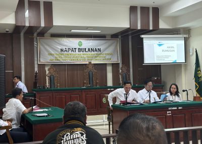 Pengadilan Tata Usaha Negara Bandung kembali menggelar rapat bulanan yang rutin dilaksanakan setiap bulannya. Rapat ini dihadiri oleh seluruh unsur pimpinan, hakim, pejabat struktural dan fungsional, serta ASN PTUN Bandung. Rapat bulanan periode bulan Agustus ini dipimpin langsung oleh Ketua PTUN Bandung, Dr. Syofyan Iskandar, S.H., M.H., yang membahas beberapa agenda penting terkait dengan perkembangan dan persiapan PTUN Bandung dalam menghadapi berbagai kegiatan dan program kerja di bulan ini.