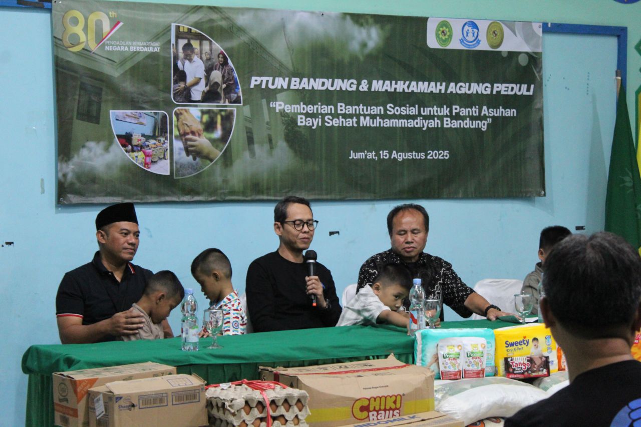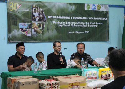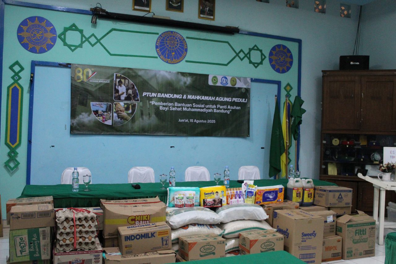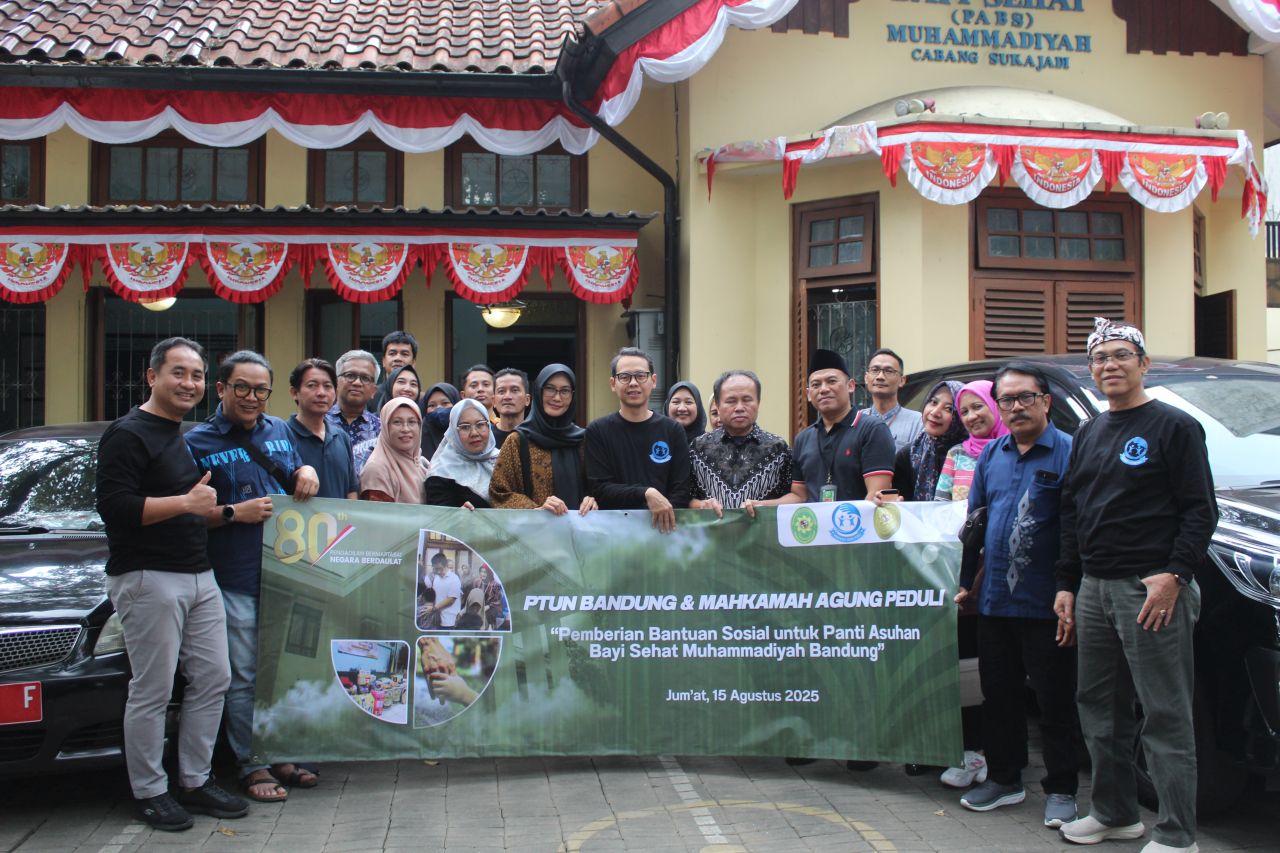 Dalam rangkaian kegiatan Bakti Sosial Mahkamah Agung Peduli menyambut Hari Ulang Tahun Kemerdekaan Republik Indonesia ke-80 dan Hari Ulang Tahun Mahkamah Agung RI ke-80, Pengadilan Tata Usaha Negara (PTUN) Bandung melaksanakan kegiatan sosial berupa penyerahan bantuan kepada Panti Asuhan LKSA Bayi Sehat Muhammadiyah Cabang Sukajadi.