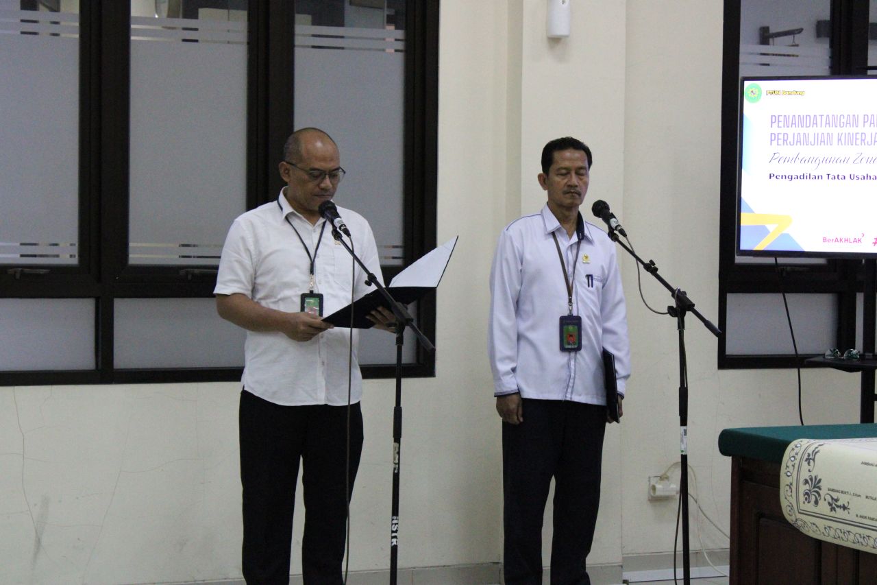 Pengadilan Tata Usaha Negara Bandung melaksanakan kegiatan Penandatanganan Pakta Integritas, Perjanjian Kinerja, serta Komitmen Bersama Pembangunan Zona Integritas Tahun 2026 yang diikuti oleh seluruh Hakim dan Pegawai PTUN Bandung.
