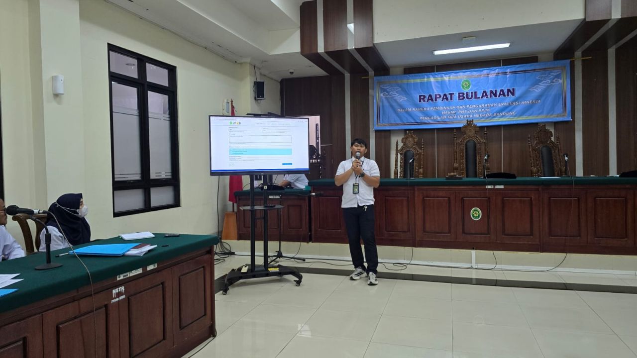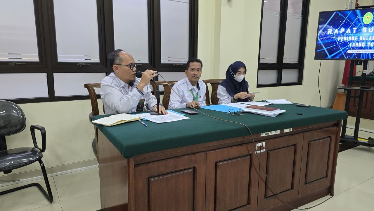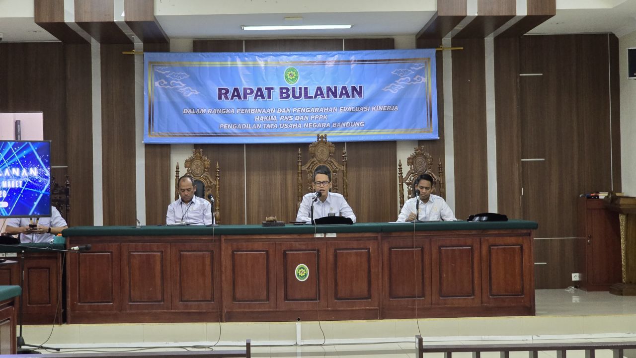 Pengadilan Tata Usaha Negara Bandung melaksanakan Rapat Bulanan Periode Maret 2026 yang dipimpin oleh Ketua dan Wakil Ketua PTUN Bandung, serta dihadiri oleh Hakim, Pejabat Struktural, Pejabat Fungsional, dan ASN.