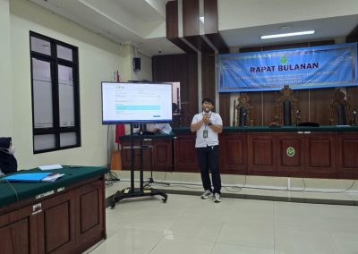 Rapat diawali dengan paparan dan laporan kinerja dari unsur Kepaniteraan dan Kesekretariatan, yang memaparkan kondisi terkini serta capaian kinerja masing-masing bagian sebagai bahan evaluasi bersama.